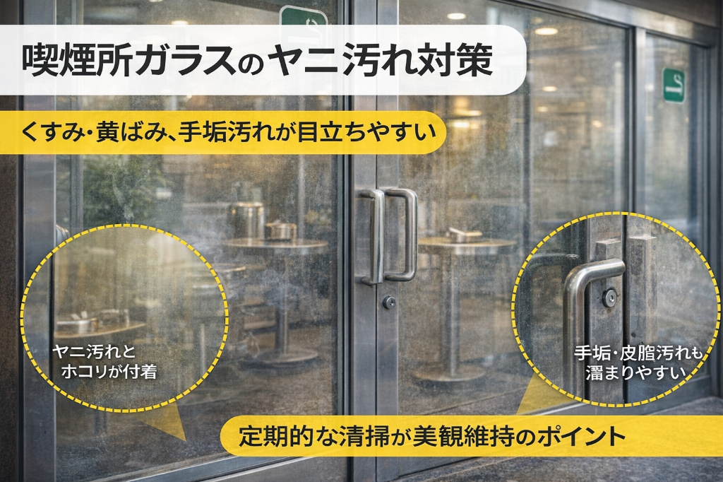 喫煙所ガラスのヤニ汚れ対策